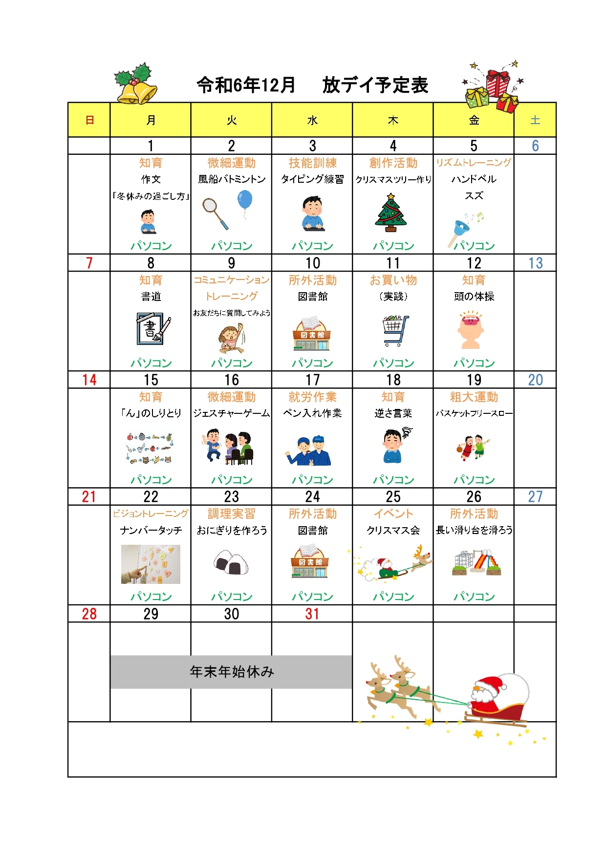 12月予定表をアップしました🎵